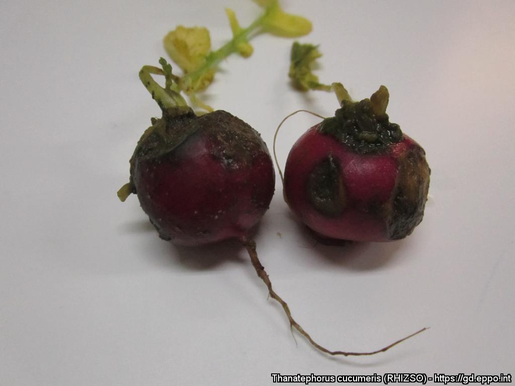 areolate leaf spot | black scurf of potato | black speck of potato | bordered sheath spot of rice | bottom rot of lettuce | collar rot | damping-off of seedlings | foot rot | fruit rot | leaf blight of yam | sore shin of tobacco | stem canker | stem rot of cauliflower | stem rot of potato | target leaf spot of rubber | tuber soft rot of yam | web blight
