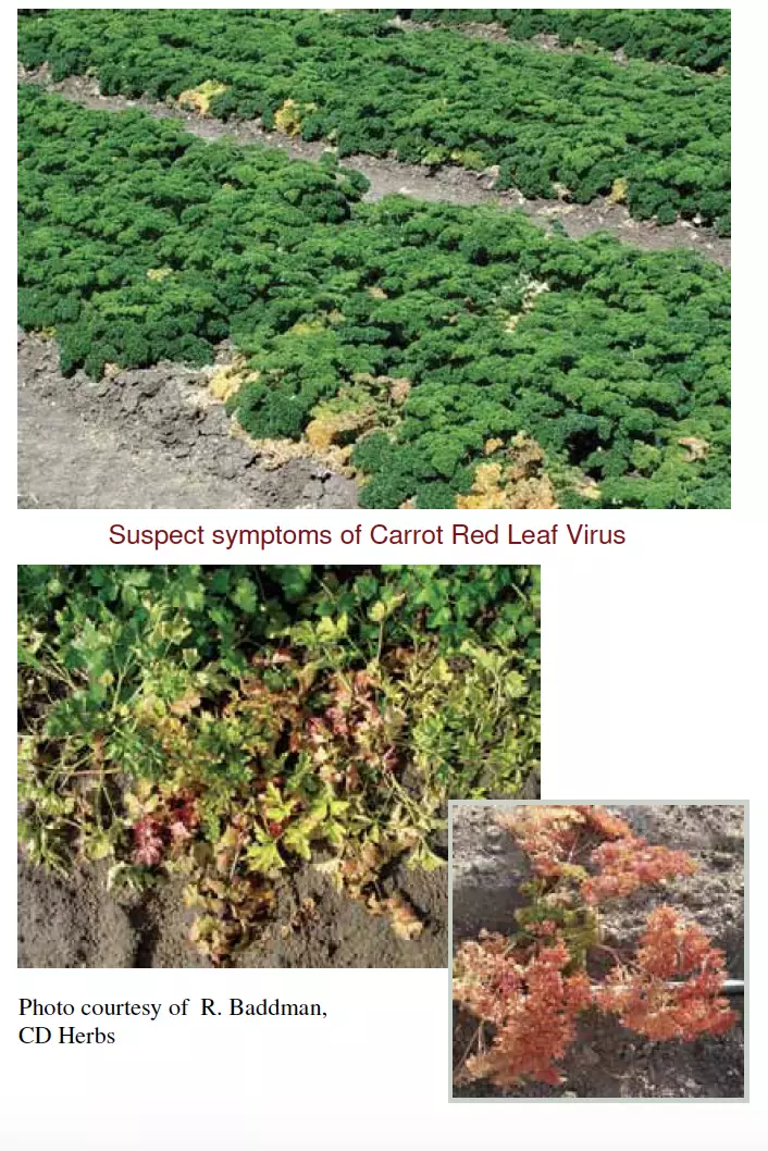 Вредный объект Вирус красных листьев моркови, входит в группу Вирусные заболевания