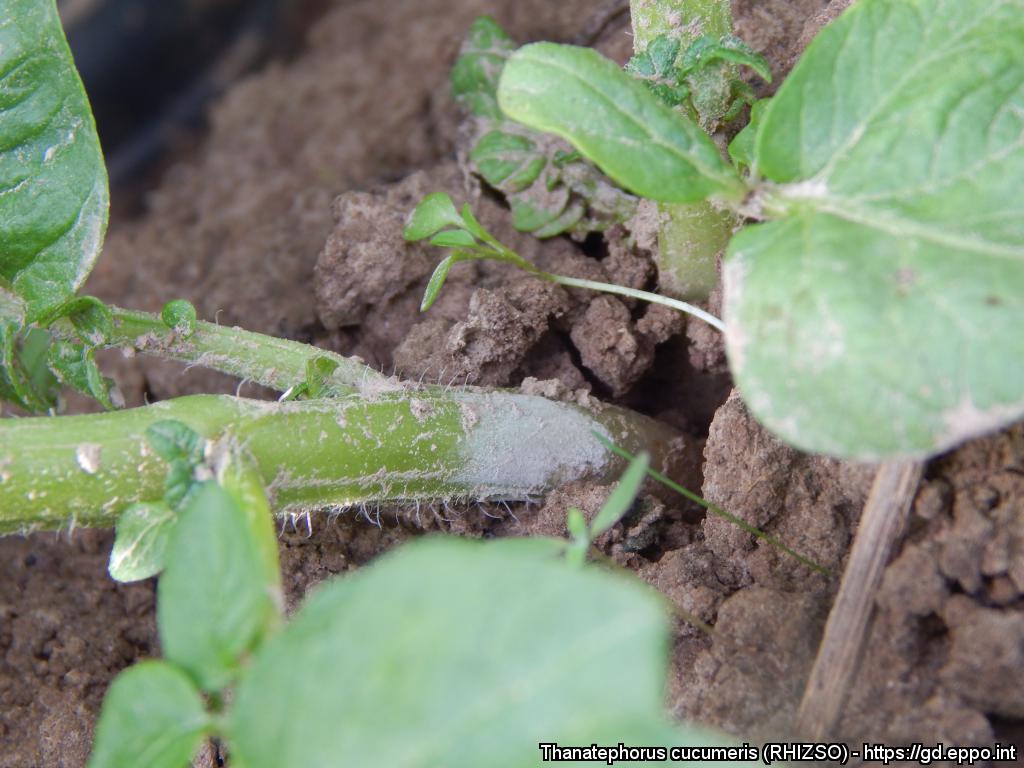 areolate leaf spot | black scurf of potato | black speck of potato | bordered sheath spot of rice | bottom rot of lettuce | collar rot | damping-off of seedlings | foot rot | fruit rot | leaf blight of yam | sore shin of tobacco | stem canker | stem rot of cauliflower | stem rot of potato | target leaf spot of rubber | tuber soft rot of yam | web blight